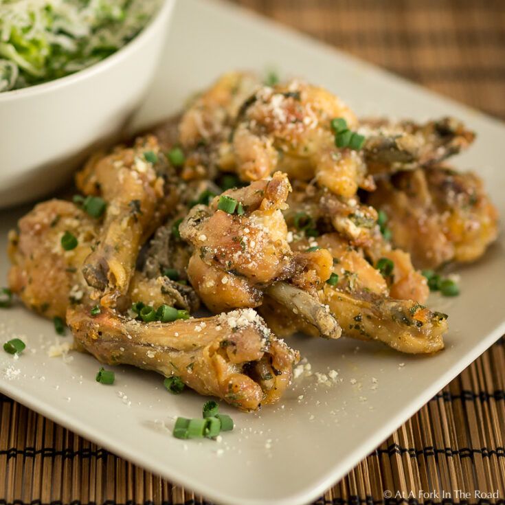 One of our favorite nights out is wing night at our local Boston Pizza. We also want to curb our dining out as well as cut back on deep-fried food. So consequently, I now make these oven-baked wings at home. These tasty oven-baked wings have become a favorite in our house – who doesn’t like garlic?! They are great made ahead and then just pop the tray into the oven to bake while you prepare a tasty salad!