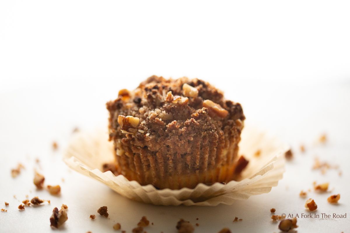 - Bake for approximately 25 minutes, or until a toothpick comes out clean. The crumb topping browns easily and you may want to cover with foil for the last 5 - 10 minutes if desired. The muffins in my photo were NOT covered.