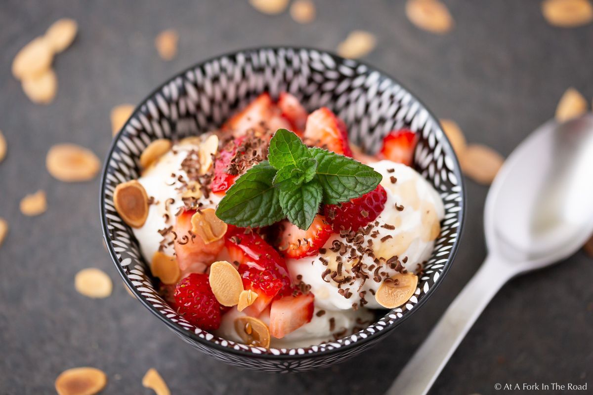 It’s definitely spring here with hot weather and summer not far behind! So you know that means ICE CREAM season! While there are plenty of keto ice cream recipe’s out there, many have lots of ingredients and steps or they freeze like concrete! This Low Carb Whipped Sundae dessert can be served just cold like you would whipped cream or you can freeze for a few hours to get a more “ice cream” feel to it. Either way this is super simple to make and can be topped so many ways! Pictured here, we did sliced strawberries, toasted almonds, grated sugar free chocolate and some sugar free maple pecan syrup!