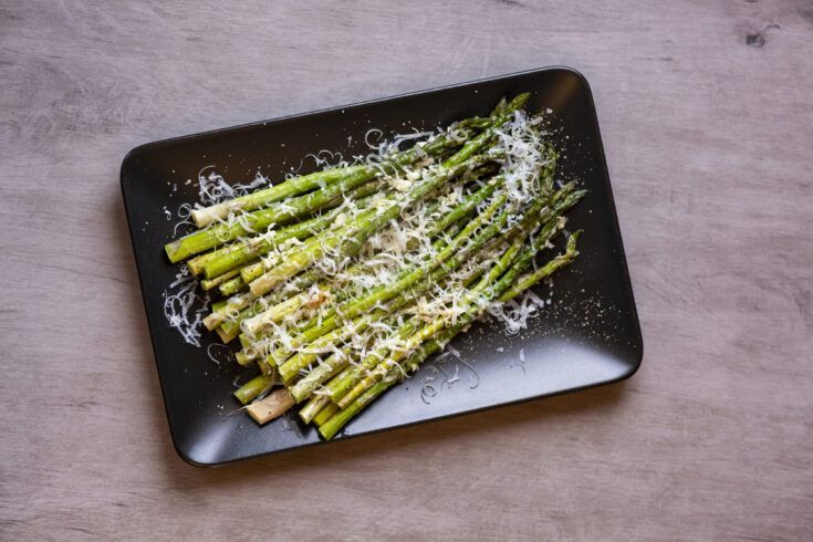 This quick and easy Roasted Garlic Parmesan Asparagus recipe makes a great side dish with any type of protein! You can have dinner on the table in under 30 minutes or less depending on your protein!